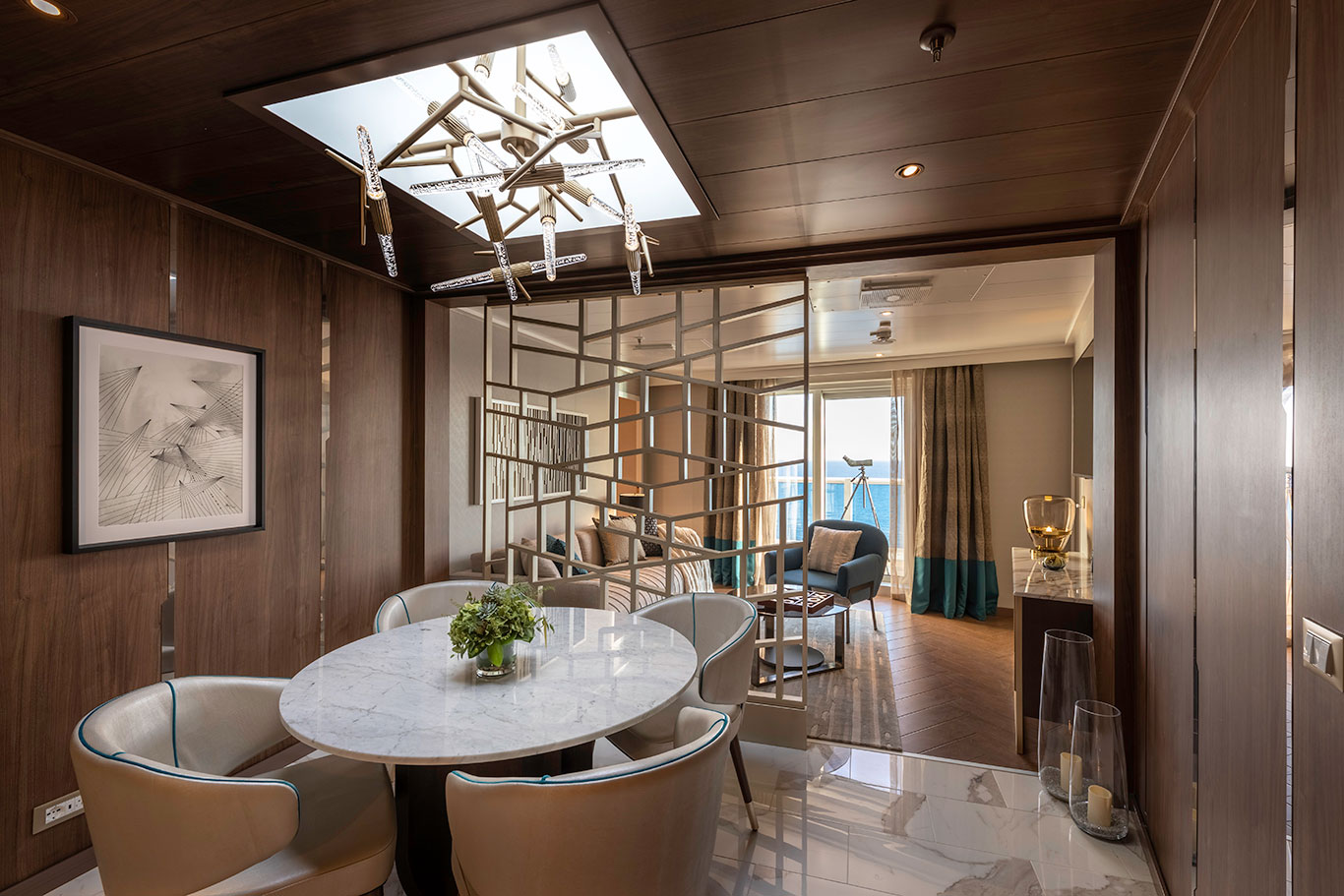 Tijdens de cruise biedt de suite-ervaringsmanager (in wezen een toegewijde butler/conciërge) persoonlijke, op maat gemaakte service, gebaseerd op de behoeften van de gasten. Onder deze diensten kunnen gasten zowel in de suite als op het balkon dineren voor ontbijt en diner.