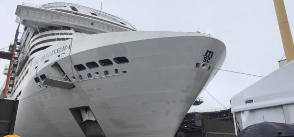 Zaterdag is bij Chantiers de l’Atlantique in Saint-Nazaire de de MSC Grandiosa ter water gelaten. Omdat het schip niet op eigen kracht kan varen werd het met