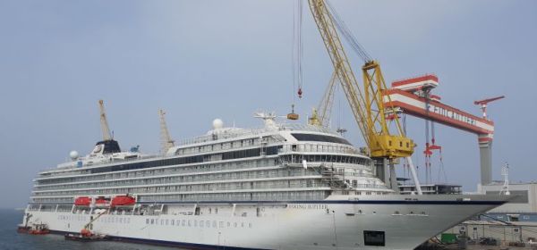 Het net vernoemde schip Azamara Pursuit(voorheen Adonia) is bij Harland & Wolff in Belfast aangekomen om de komende drie maanden grondig gerenoveerd te worden. MJM Group