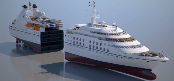 De SuperStar Libra ligt momenteel voor de werfhaal van de MV werf in Wismar en zal tot woonschip dienen tijdens de hutten inbouw van de