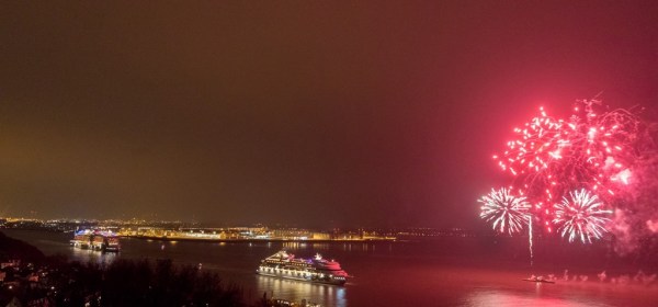 AIDAperla heeft inmiddels voor de eerste keer Hamburg bereikt, wel met wat vertraging. Door het slechte weer kon de AIDAperla niet over de Elbe varen en