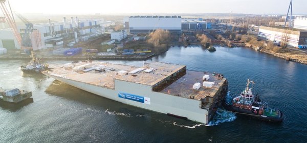 Deze week is de tweede sectie van de machinekamer voor de AIDAnova van Rostock naar Papenburg verscheept. In september is de eerste sectie met Dual-Fuel-Motoren naar